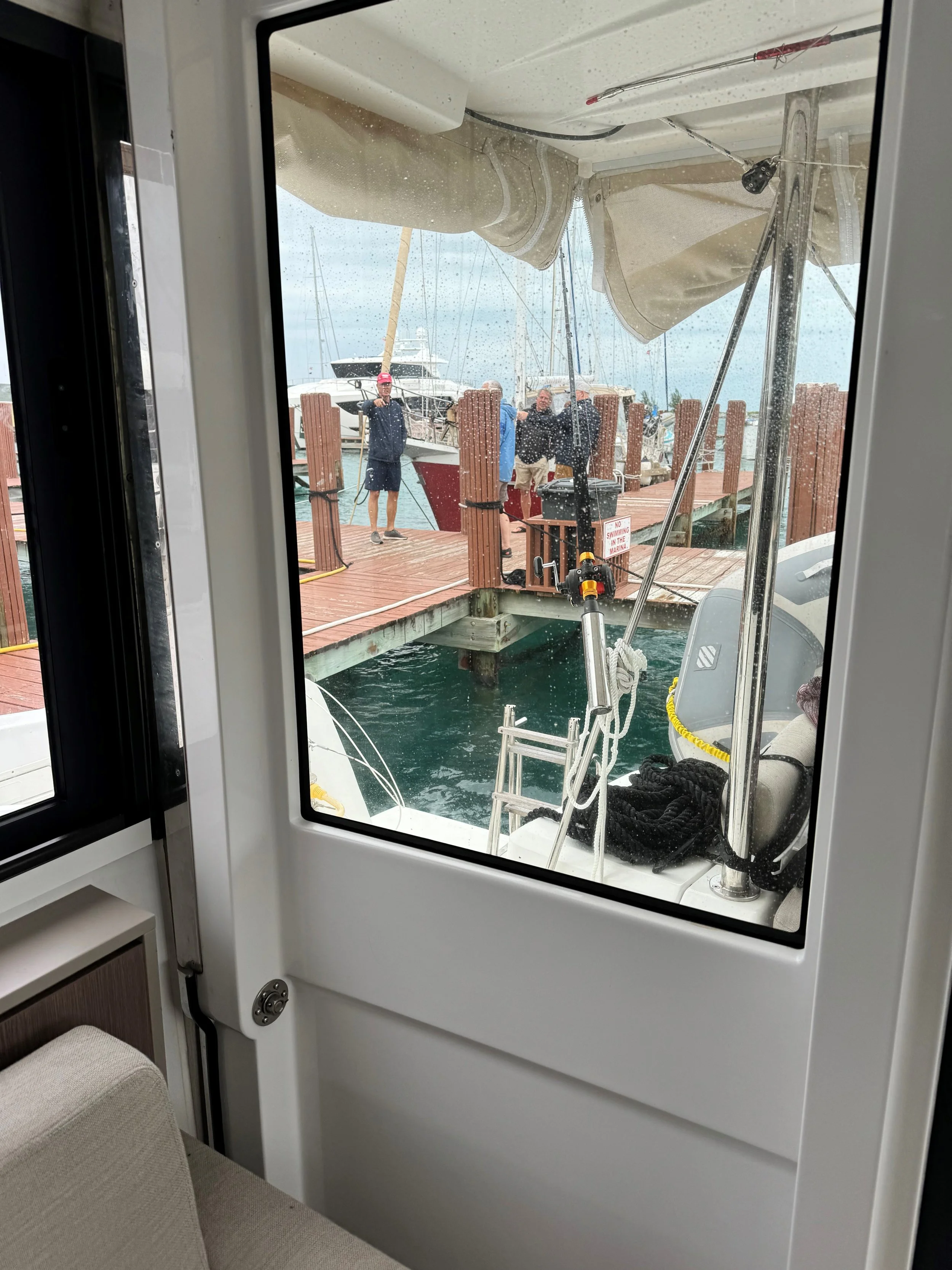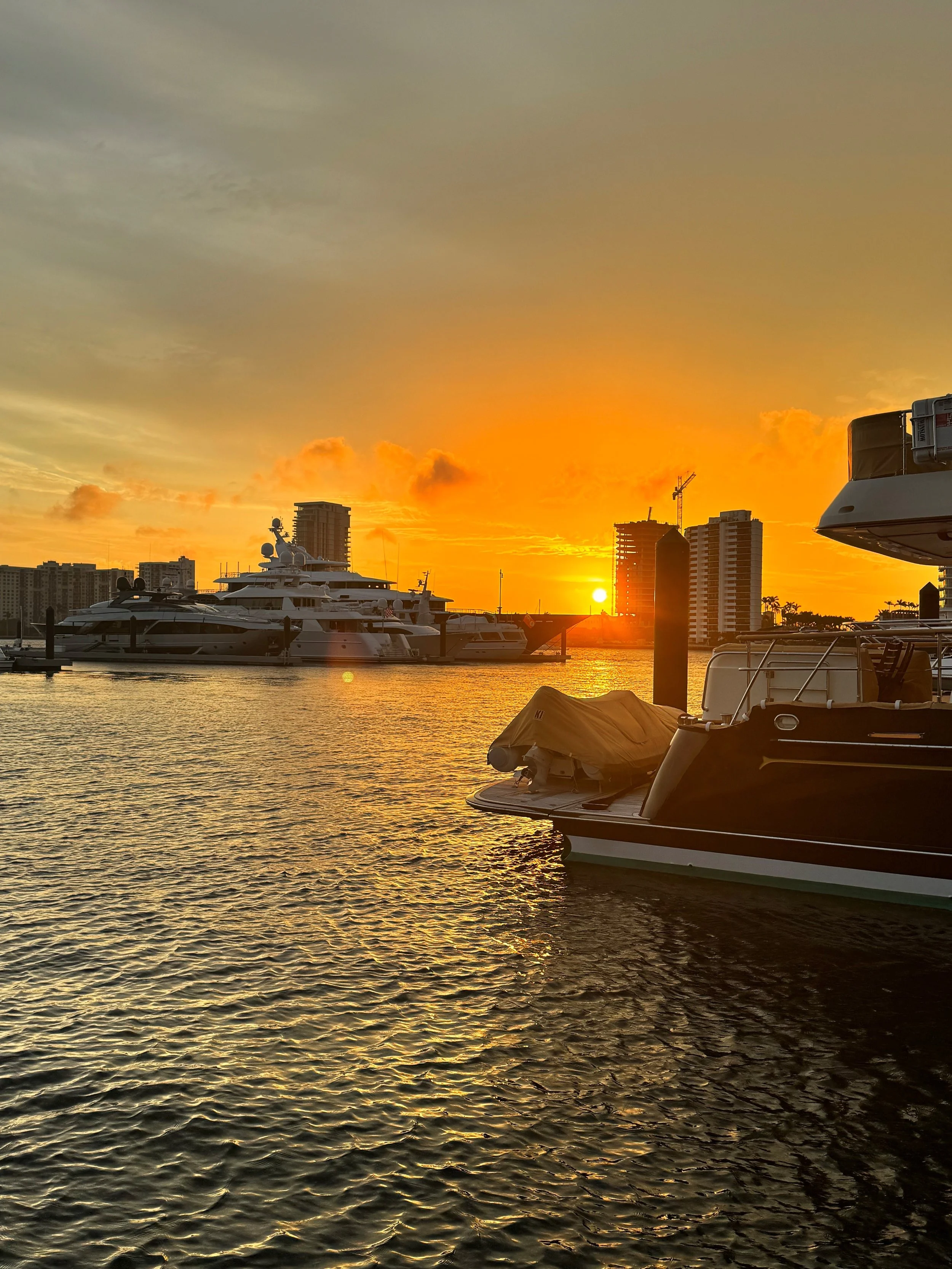 1/15/24 Woke up to a weather window and decided to go for it. We got things together and checked out of the Bahamas for this trip. We used 3 weeks of our 3 month cruisers permit this time, I suspect Shane will want to use it all next time. We had fairly good sees most of the day. We avoided some squalls but overall had great weather. We came in and headed south to dock at the Town of Palm Beach Marina. It is so nice to see floating docks and nice facilities again. We got in and settled and enjoyed big boat watching while eating dinner on the smallest boat in the marina. 61 miles from West End to Palm beach.
