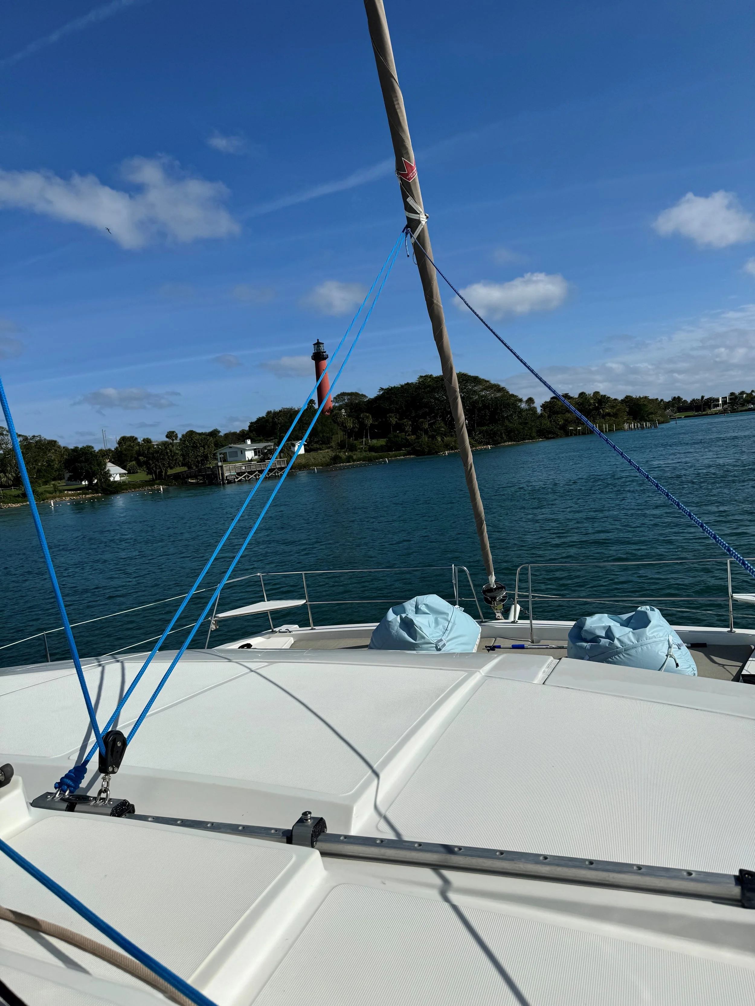 1/17/24 Left big boat land to start our journey north. We cruised under lots of bridges and saw all kinds of boat traffic. We passed by the Jupiter Light House and talked with all kinds of bridge tenders. We found a quiet spot to anchor at Peck Lake. We rode to the shore and walked over to the beach. The winds were blowing and we got slightly sand blasted so we cut our walk short. Enjoyed a nice evening on the boat getting some work done and relaxing. It was a little chilly at 65 and windy but those at home had it much worse at 14. 27 nautical miles this day.