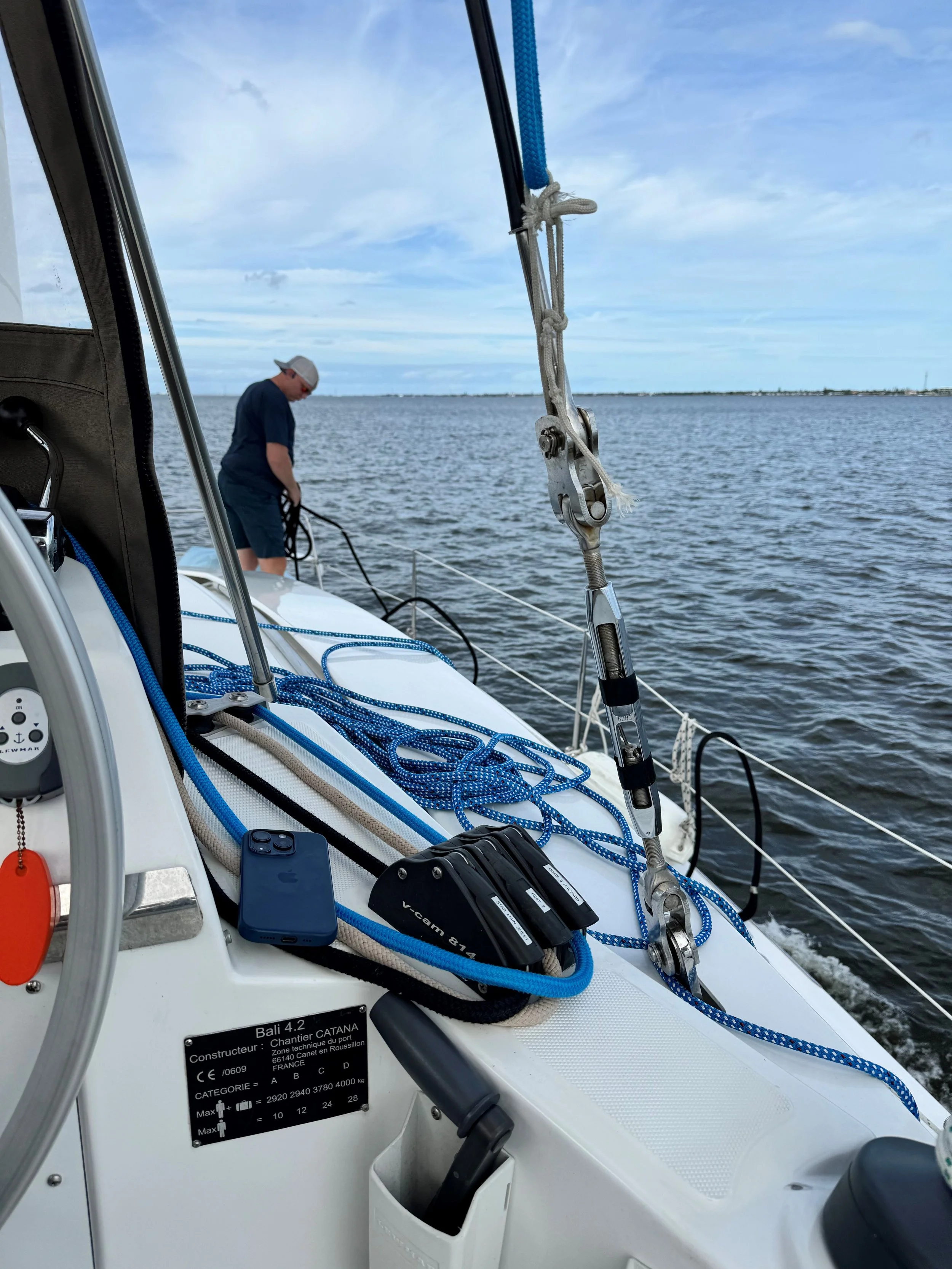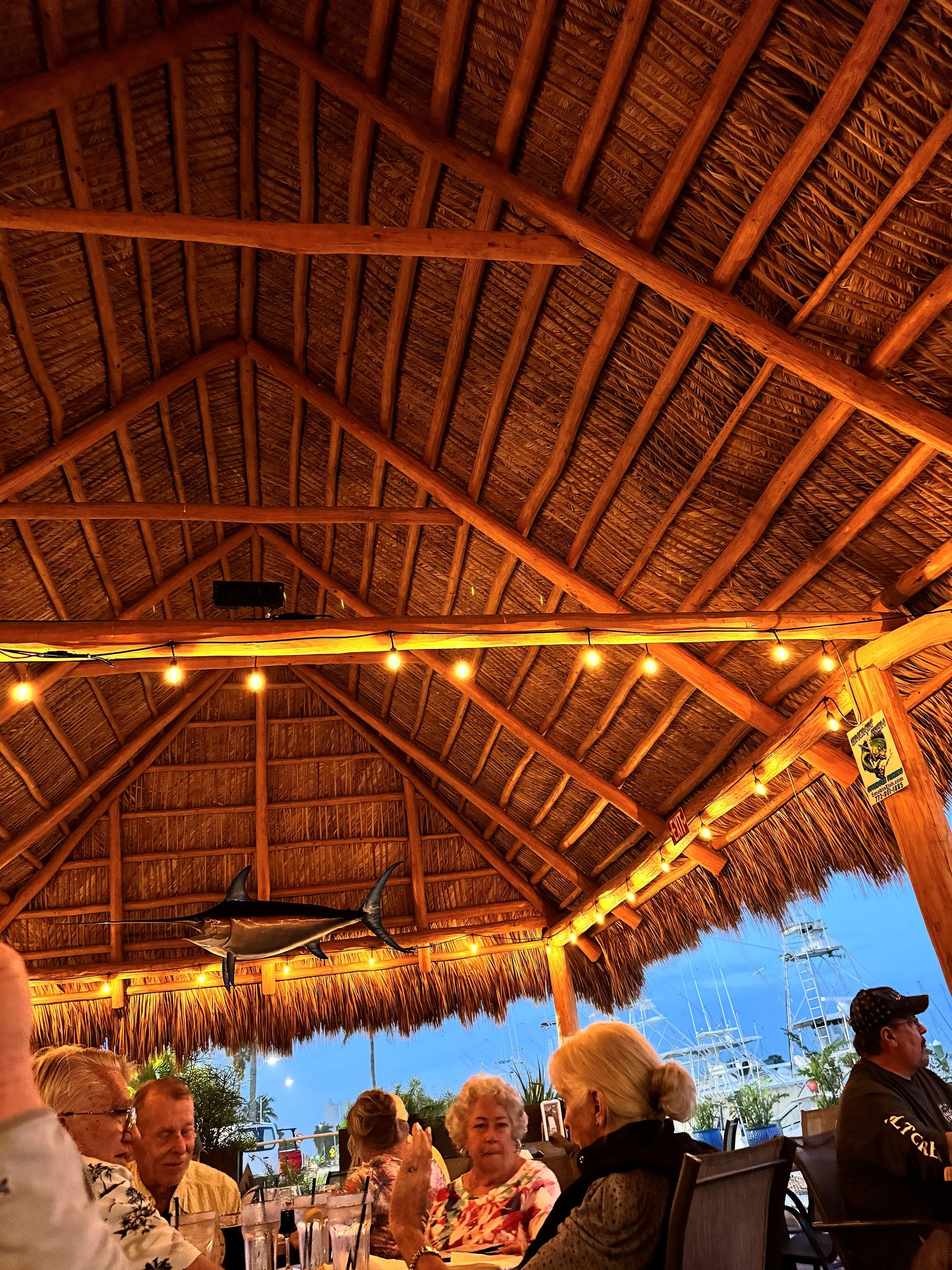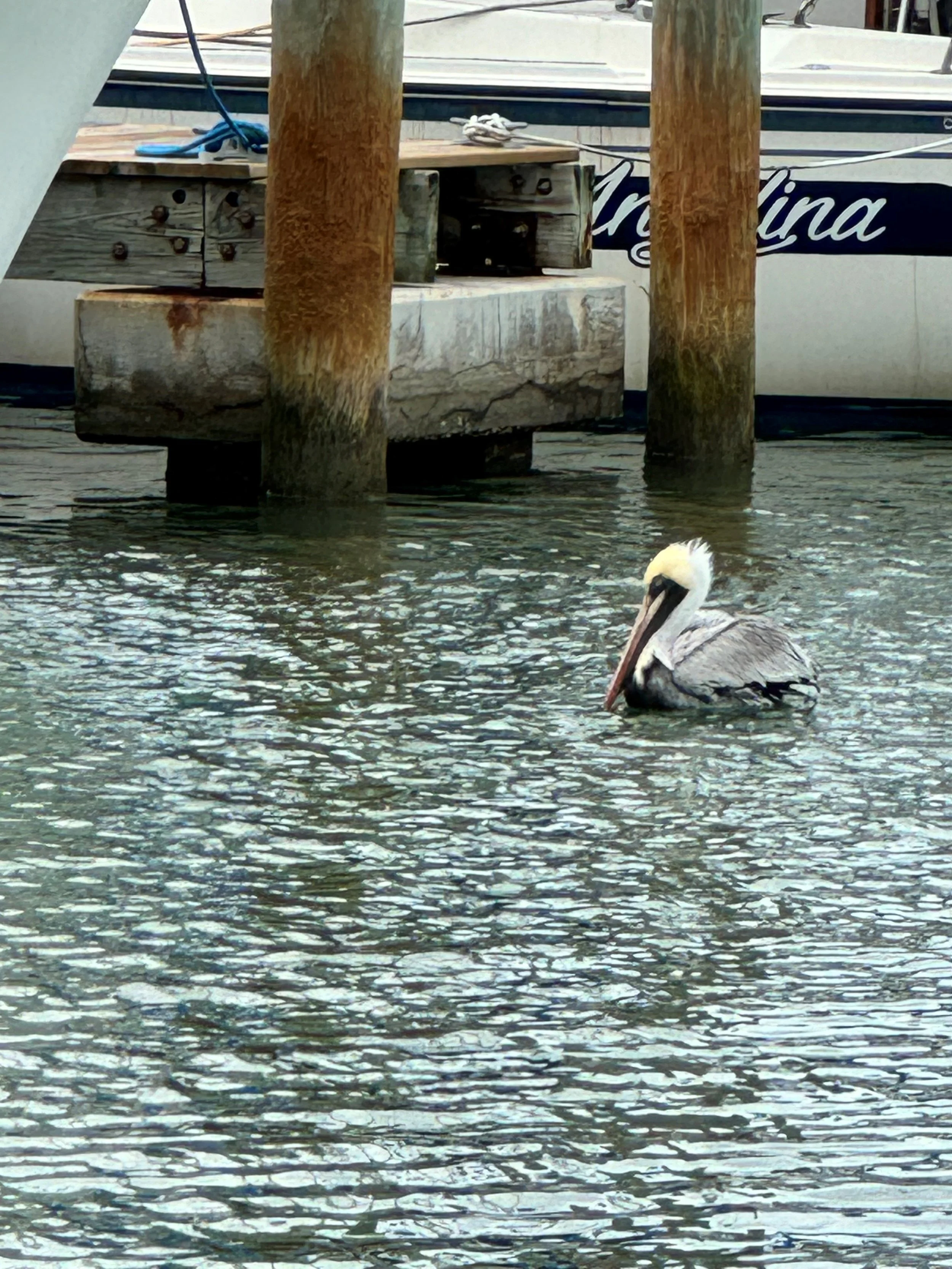 1/18/24 Continuing north, it was cloudy and overcast but still warm. We pulled up anchor about 9 and took off for Fort Pierce. We got in fueled up and got on the dock. Saw bunches of pelicans and a few manatees. When we got settled we ran a few errands. Called for an Uber and ended up with a “rock star” driver. Literally, he claimed to be a bass player with Meatloaf and other famous guys. He was a great driver too and waited for us at West Marine, Publics and then took us over to the island to a liquor store where Shane scored some Blantons. We got back to the boat and headed over to dinner right there at the marina. We enjoyed some live music and good food at Cobbs Landing. 23 nautical miles this day.